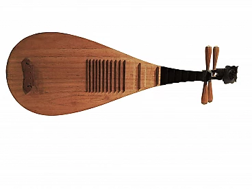 Originale nonchè particolare e bella chitarra cinese in legno con capo corda intagliati a mano ed inserti in avorio/osso e bottoncini laterali al capo corda in ottone. Molto bella nel suo insieme in buone condizioni generali anche se necessita di piccoli restauri Misure: lunghezza 87 cm l larghezza cassa 27 cm. spessore cassa 5 cm. lunghezza del capocorda 13 cm. larghezza manico 6,5 cm. peso 1,450 kg