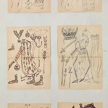 Disegni contemporanei di Remo Brindisi, schizzi, anni '70