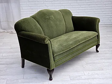Divano danese a 2 posti in velluto verde e frassino, anni '50