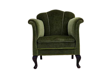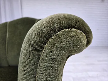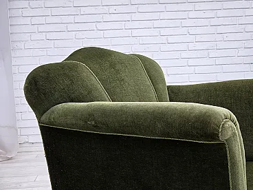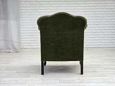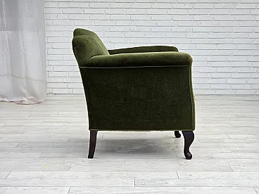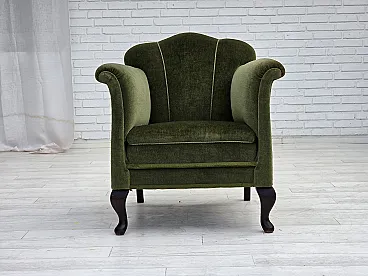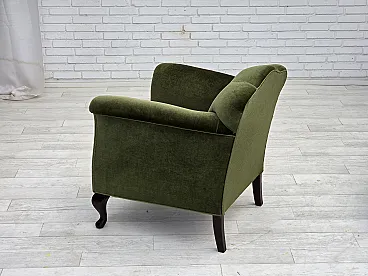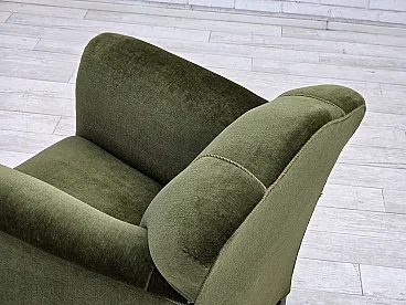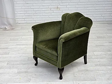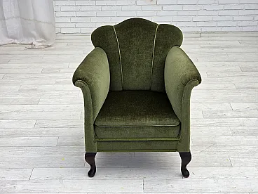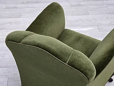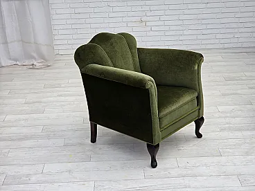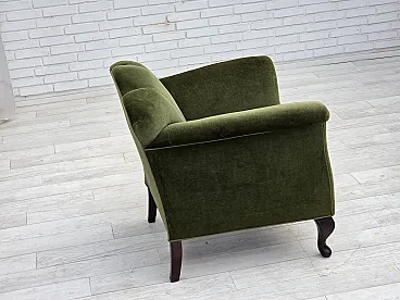 Poltrona danese, velluto verde, gambe in frassino, anni '50