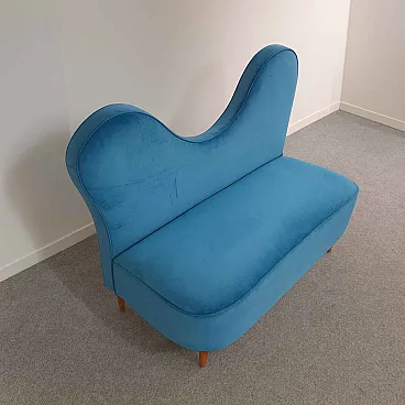 Divano by Cesare Lacca in velluto Turchese, Italia, anni '50