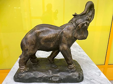 Scultura in Terracotta patinata di Thomas François Cartier “Elephant en furiè” originale primi '900