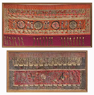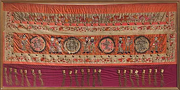 Utilizzato probabilmente come stendardo cerimoniale per processioni o festività, presenta alcuni segni di usura della seta e parziale sbiadimento dei colori, e si configura come un ottimo esempio dell'arte tessile cinese per l'alta qualità tecnica del ricamo e l'iconografia tradizionale ben conservata.
