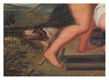 Lo stile della composizione, con le figure femminili dalle forme rotondeggianti e dagli incarnati chiari, i panneggi colorati e luminosi, e l'ambientazione naturalistica arricchita da animali e dettagli, rimanda chiaramente all'ambito della scuola fiamminga di Anversa, nei primi decenni del XVII secolo.