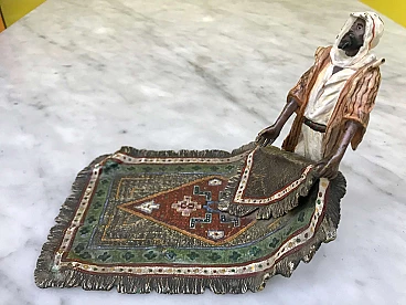 Franz Bergman, scultura viennese con “Venditore di tappeti” in bronzo policromo, originale ‘800
