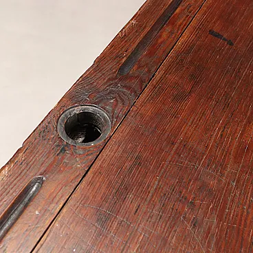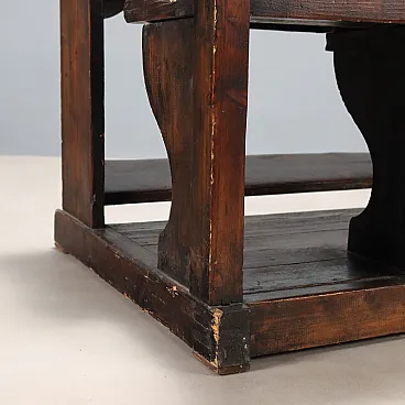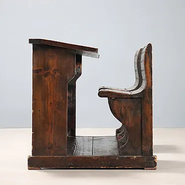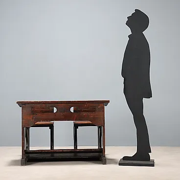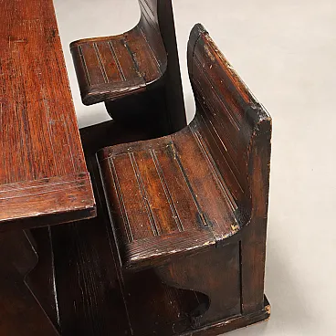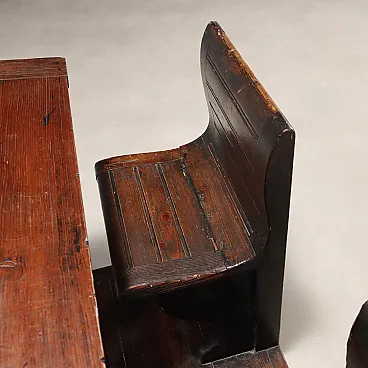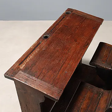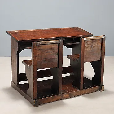 Banco scuola in larice tinto noce con due sedili ribaltabili, '800