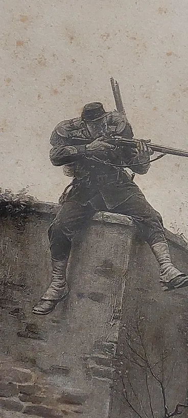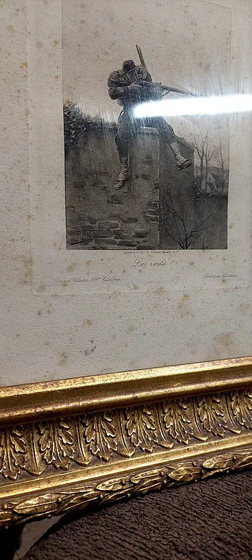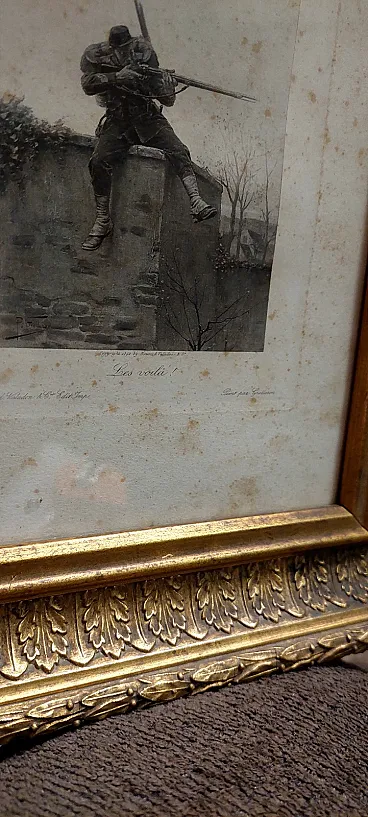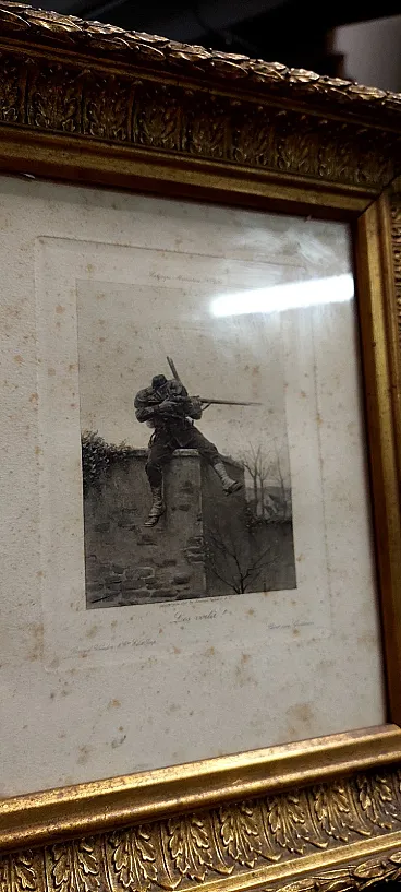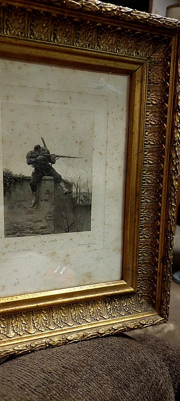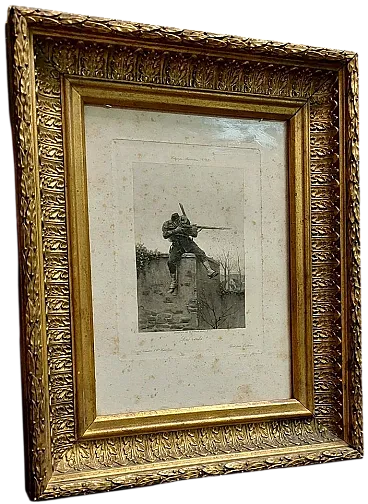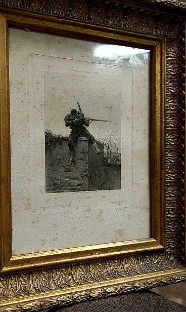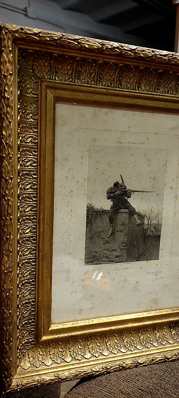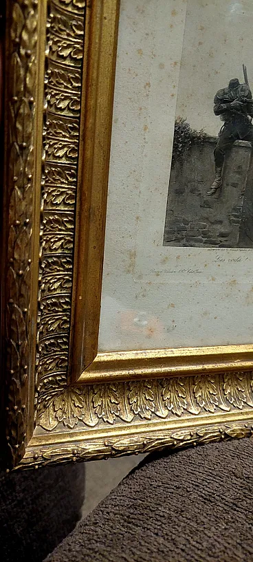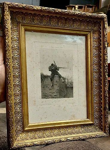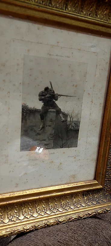 Cornice in pastiglia dorata con stampa di soldato, primo '900