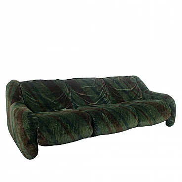 Divano a 3 posti di Tobia Scarpa progettato e prodotto negli anni '70. Divano di elevata qualità e manifattura. Presenta una libreria in legno nella parte posteriore della seduta. Struttura solida in legno rivestito in tessuto. Ottime condizioni generali, ma sono presenti segni del tempo.