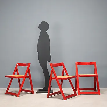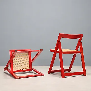 3 Sedie pieghevoli in legno laccato e sedile in paglia di Vienna, '900