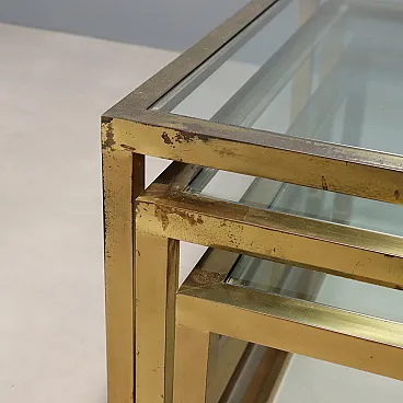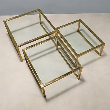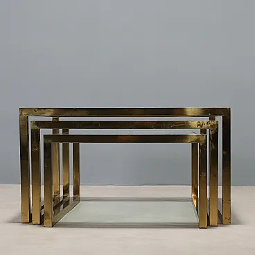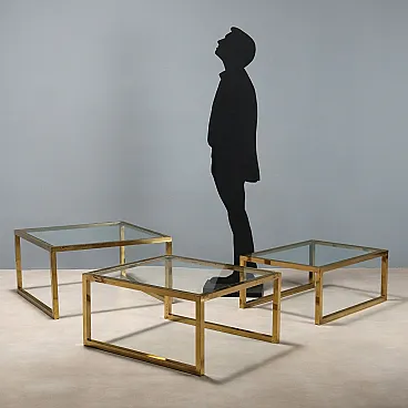 3 Tavolini impilabili in ottone e piani quadrati, '900