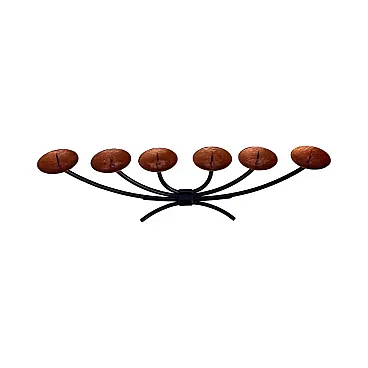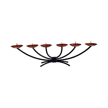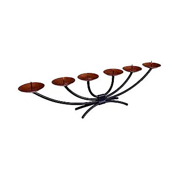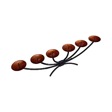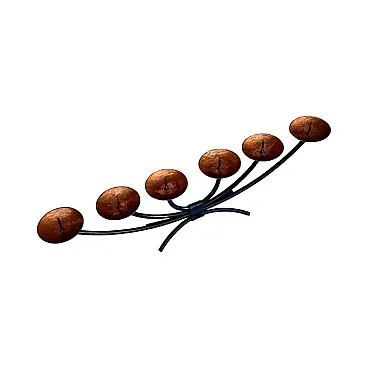 Candeliere in metallo con piastre in rame forgiato, anni '70