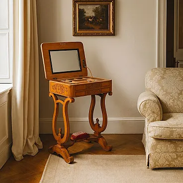 Tavolo da cucito Carlo X in ciliegio e noce con intarsi, '800