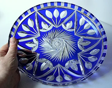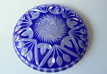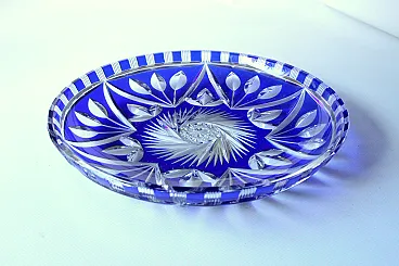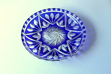 Ciotola in vetro cristallo al piombo di Boemia blu cobalto, anni '70