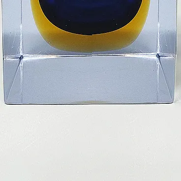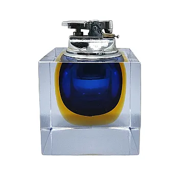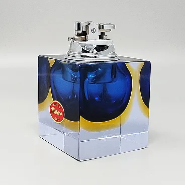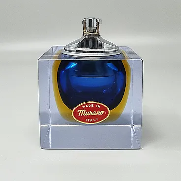 Splendido accendino da tavolo blu e giallo degli anni '60 in vetro Sommerso di Murano di Flavio Poli per Seguso. Prodotto in Italia L'articolo è in ottime condizioni e funziona perfettamente