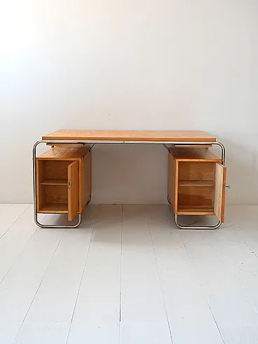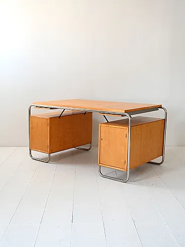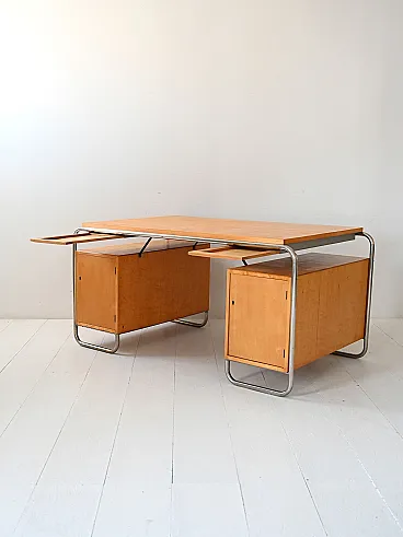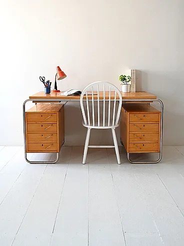 Scrivania scandinava in betulla e acciaio di Mücke & Melder, anni ’30