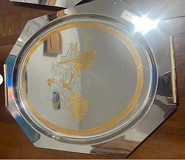 3 Vassoi da portata in metallo placcato in acciaio inox, anni '90