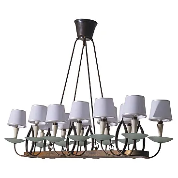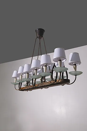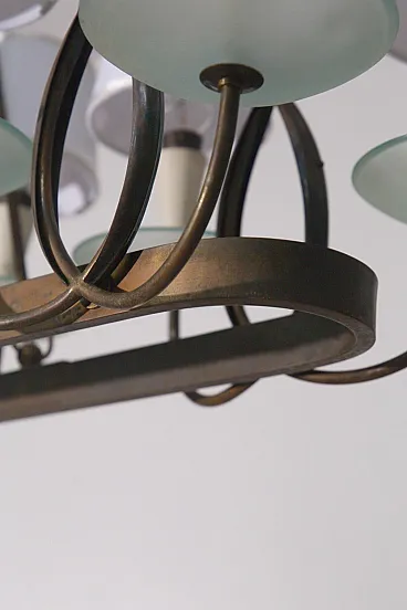 Lampadario di P. Chiesa per Fontana L. in ottone e vetro, anni '30