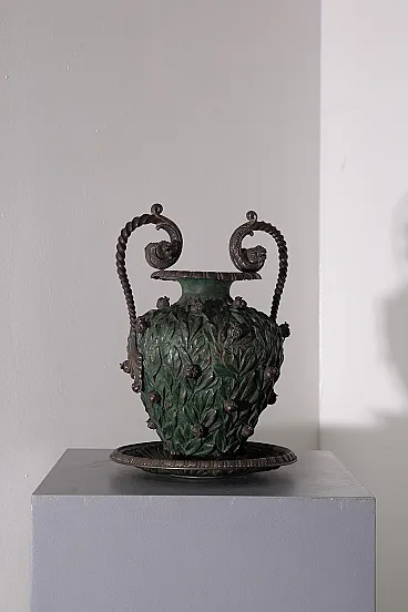 Vaso con base in rame e placcatura parziale in argento, '800
