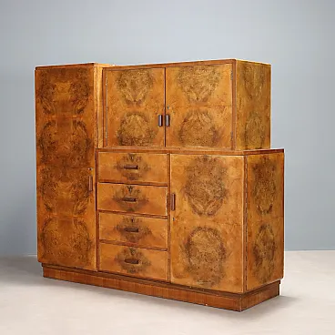 Mobile con ante battenti e cassetti in radica di noce, '900