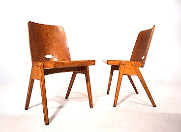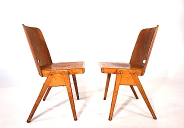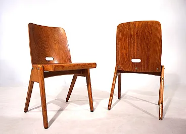 Coppia di sedie da pranzo impilabili in compensato, anni '60