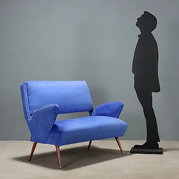 Divano a due posti in velluto con braccioli, '900