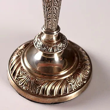 Coppia di lampade in metallo goffrato e paralume in tessuto, '800
