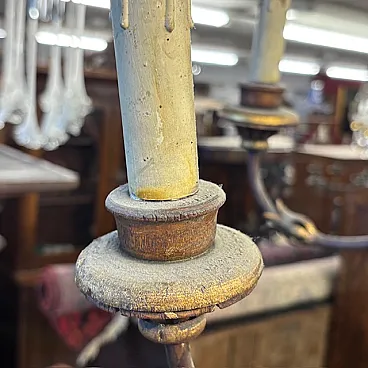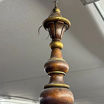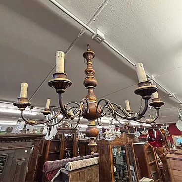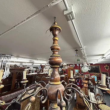 Lampadario 8 luci legno tornito e ferro battuto, 1940
