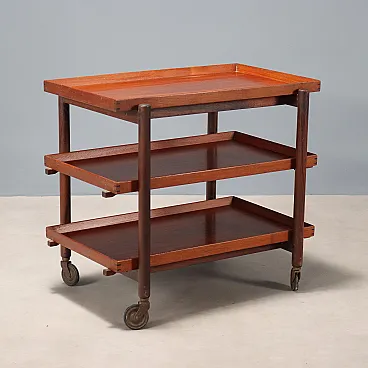 Carrello da servizio impiallacciato in teak, '900