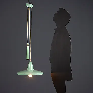 Lampada con meccanismo a discesa e paralume in alluminio, '900