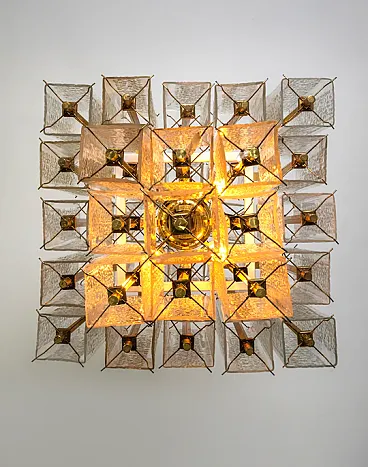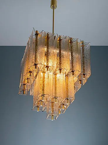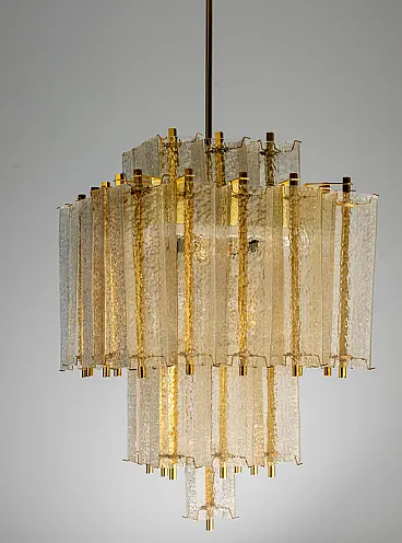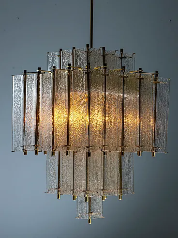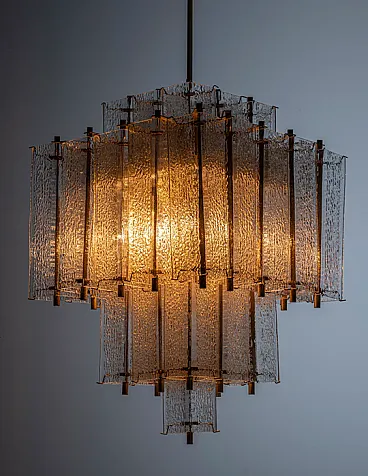 Lampadario in ottone e vetro ghiacciato strutturato, anni '50