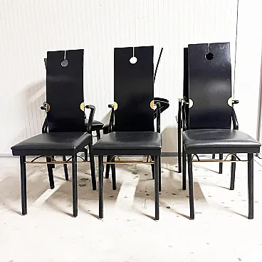 6 Sedie di Pierre Cardin in pelle, legno e ottone, anni '80
