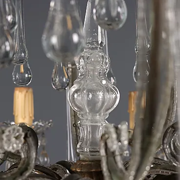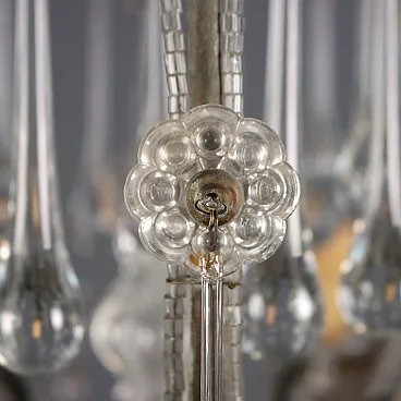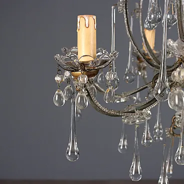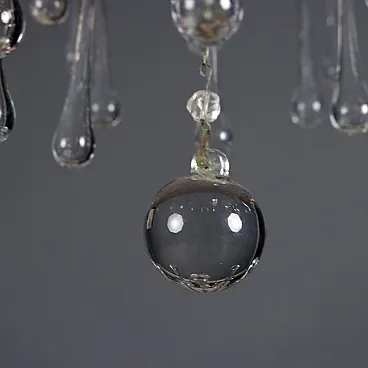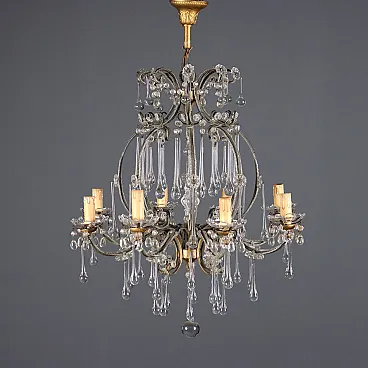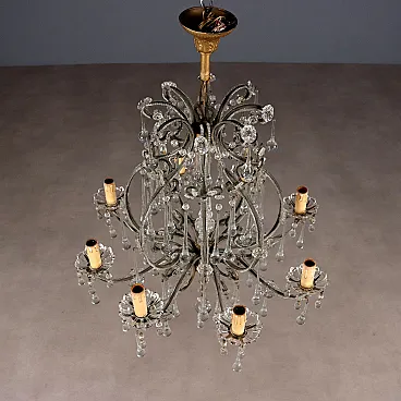 Lampadario in metallo e lamiera lavorata e collane in vetro, '800