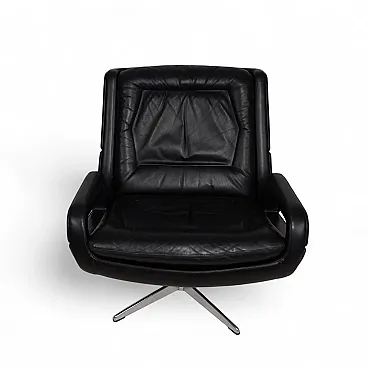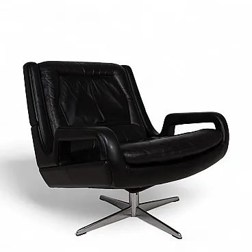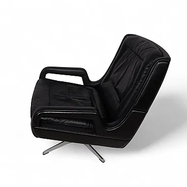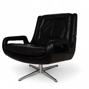 Poltrona lounge in pelle nera Carl Straub, anni '60