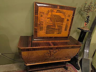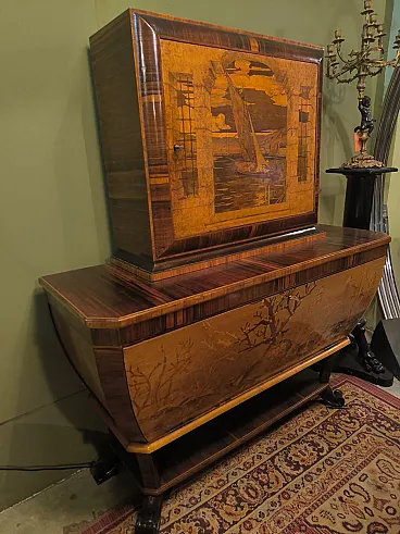 Cornelio Ferrandi, mobile bar intarsiato a mano, anni '60