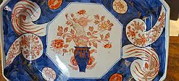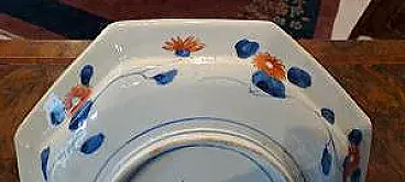Pannello centrale: Al centro del piatto si trova una composizione floreale in un vaso, tipica del repertorio decorativo Imari. Bordo: Le otto sezioni del bordo sono decorate con motivi floreali e naturalistici, con quattro pannelli a forma di nuvola (cartouches) che contengono ulteriori disegni floreali. Dettagli: L'uso dell'oro per rifinire i dettagli aggiunge un tocco di lusso e testimonia l'alta qualità del pezzo. Stato di conservazione; perfetto.
