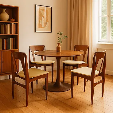 4 Sedie da pranzo in legno e tessuto giallo, '900