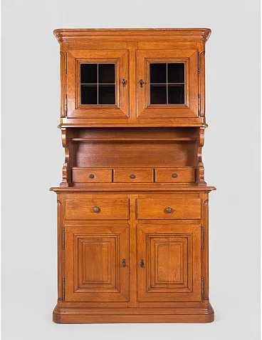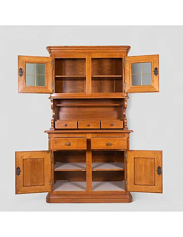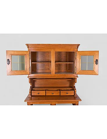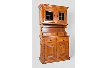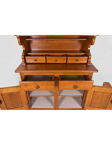 Credenza in legno massello con vetrina superiore e cassetti, '900