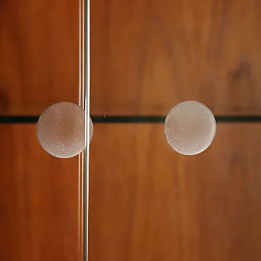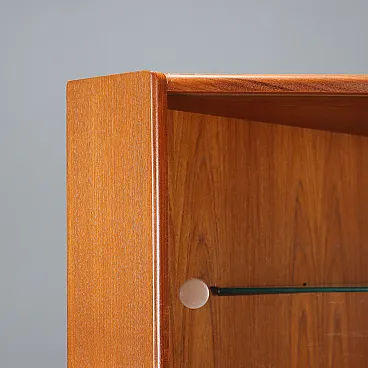 Angoliera con vani a giorno, cassetti e ante battenti in teak, '900