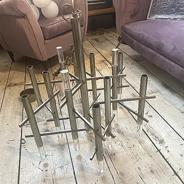 Lampadario in metallo e plexiglass di Gaetano Sciolari, anni '70