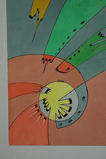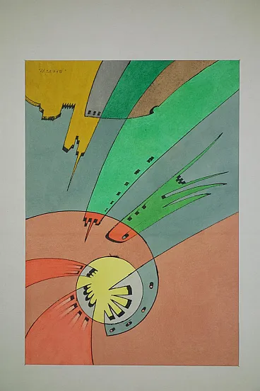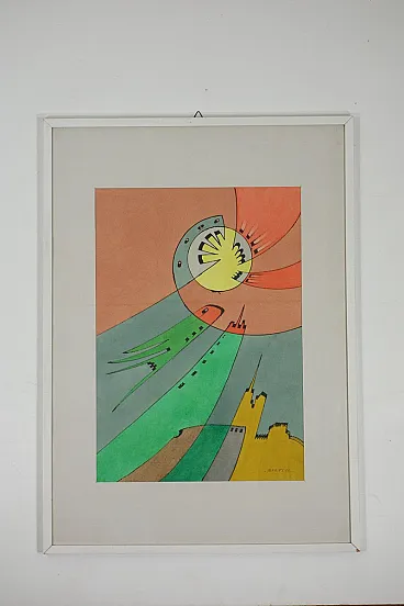 Vittorio Bravi, Composizione, opera su carta con cornice, anni '70