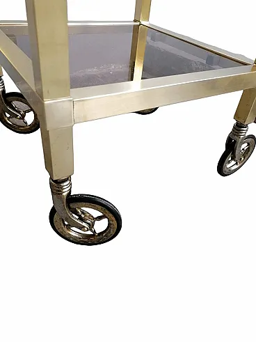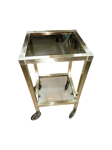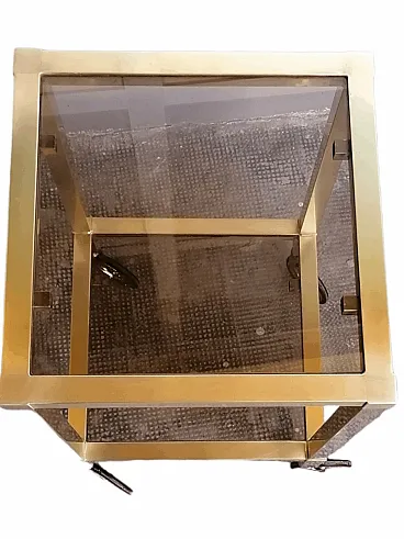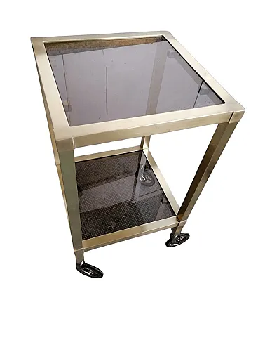 Tavolino da caffè con ruote in ottone e piani in vetro, anni '50