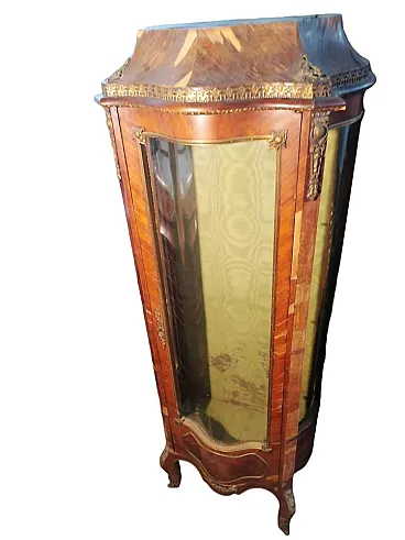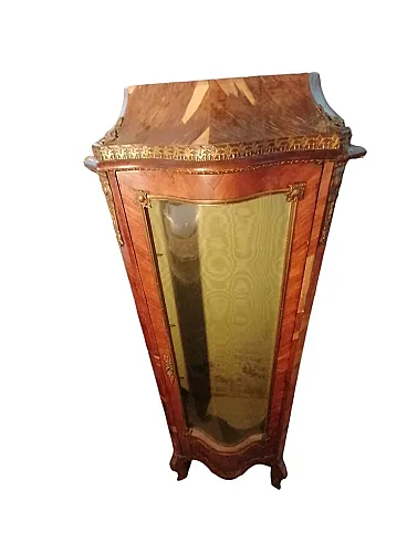 La Vetrinetta Intarsiata con Anta e Ripiani in Vetro Bois de Rose è un elegante mobile d'epoca che unisce funzionalità e raffinatezza in un design compatto. Realizzata con legno Bois de Rose, celebre per le sue venature calde e il suo aspetto sofisticato, questa vetrinetta è un ottimo esempio di fine artigianato. L'anta intarsiata con motivi decorativi e i ripiani in vetro offrono un perfetto equilibrio tra estetica e praticità, permettendo di esporre oggetti preziosi o collezionabili con eleganza.