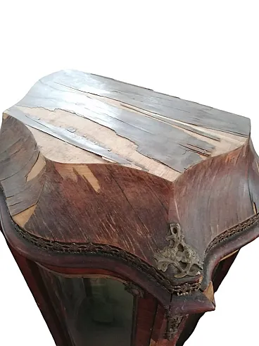 L'anta della vetrinetta è decorata con dettagli intagliati che conferiscono al mobile un aspetto unico e distintivo.