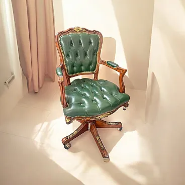 Sedia presidenziale girevole in legno con seduta in pelle, anni 2000