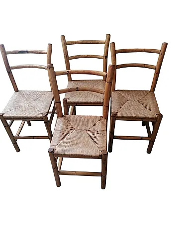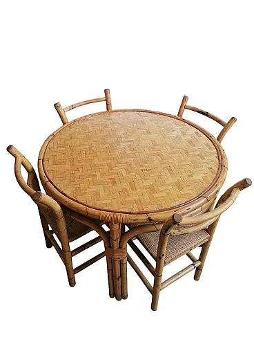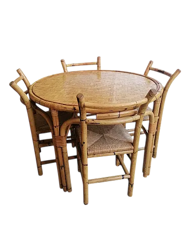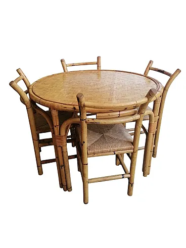 Tavolo da pranzo e 5 sedie in bambù, anni '80