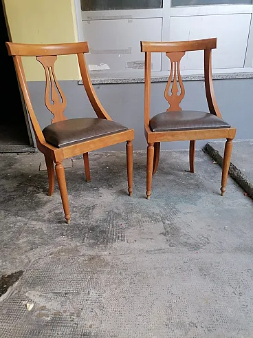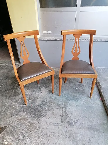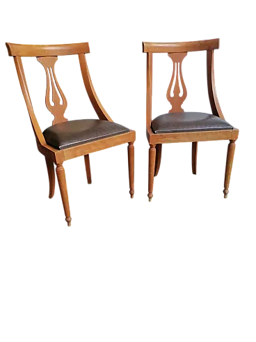 Coppia di sedie da pranzo impero con motivo a lira, anni '50