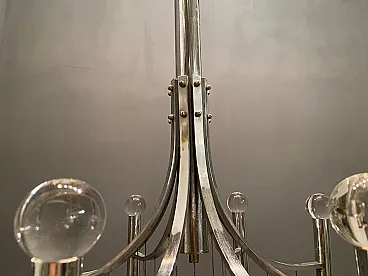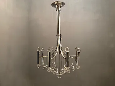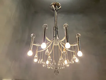 Lampadario Mid-Century in cristallo e metallo cromato di Gaetano Sciolari, anni '70