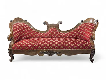 Divano in noce e tessuto rosso 3 posti, stile Neoclassico, '800