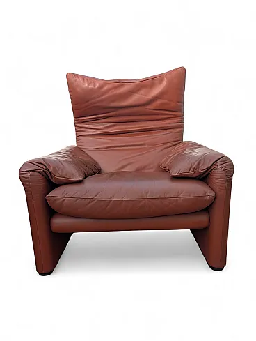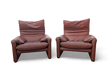 Coppia poltrone in pelle bordeaux di V. Magistretti per Cassina, 1973