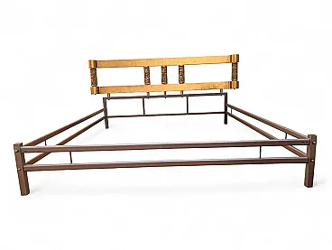 Letto in ottone con cilintri a corteggia di L. Frigerio, anni 70